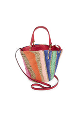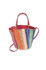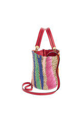 Exclusive Bienen Davis x AURETA market-basket tote is woven from straw and enlivened with rainbow-hued zebra stripes, doubling down on the warm-weather vibesCalfskin leather trim and gleaming hardware provide polished finishing touches for a classic market-basket woven from straw.