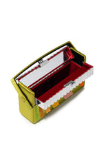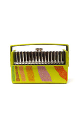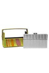 BIENEN DAVIS x AURETA Silver Tubular Xenon Minaudière with Lime Zebra Swarovski Crystal Case