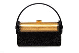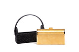 • Removable minaudière clutch in 22K gold-dipped, textured brass with velvet lining