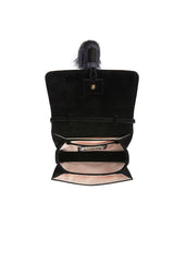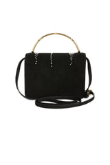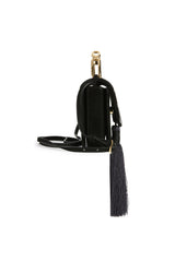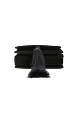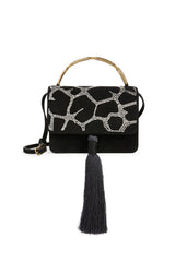 Lynx Crystal Embellished Top Handle Bag in Black Suede with Tassel