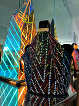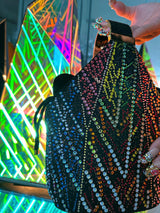Exclusive, one-of-a-kind Bienen Davis x Aureta x Ray Howlett Kit bracelet bag with hand embellished Swarovski crystals. A modern interpretation of a 1930's Bienen Davis bracelet bag, the Kit bag features a 22K gold-covered, hand-dipped, molded brass handle, over 5,000 multicolored Swarovski crystals and removable interior drawstring bag with chain link shoulder strap.